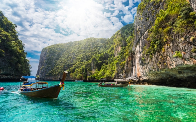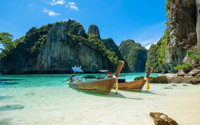 Tayland’ın belki de en egzotik adasına özel sürat teknesi ile tam günlük bir gezi düzenliyoruz. Sürat teknelerimizle Phuket’in yakınındaki iki cennet mercan adasından ilki Phi Phi Don’a hızlı bir şekilde ulaşıyoruz. Maymun Plajı'nda Makak maymunlarını görüyor ve binlerce renkli balık ile yüzme ve şnorkel imkânı buluyoruz. Palmiye ağaçları ile bezenmiş kumsalı ve tertemiz turkuaz rengi deniziyle Hollywood yıldızı Leonardo Di Caprio’nun The Beach filminin bazı bölümlerinin çekildiği Maya Bay’de denize girmek ve güneşlenmek için vaktimiz de var. Daha sonra Viking Mağarası’nı ziyaret ediyor öğle yemeğimiz Phi Phi Adası’nda alıyoruz.